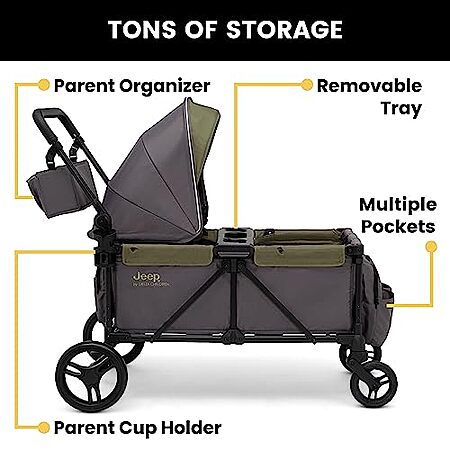 $99*: Jeep Sport All-Terrain Stroller Wagon w/ Canopy (Grey/Olive Green) at Amazon