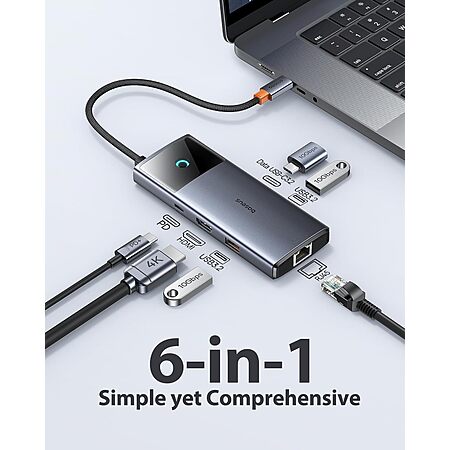 Baseus 6-in-1 10Gbps USB-C 100W PD Docking Station on sale for $49.98 - $5 off when you clip the coupon on the product page - $24.99 when you apply promo code