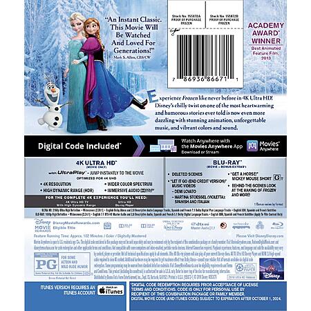 Disney's Frozen (4K Ultra HD + Blu-ray + Digital) on sale for