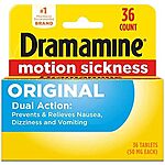 40% off Dramamine Motion Sickness Relief Medicine: 36-Count Dramamine Original Motion Sickness Pills $6.04 w/ S&S More + Free Shipping w/ Prime or $35+