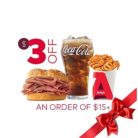 3) Main arbys.com webpage = "14 Days Of Gifts / What can we say, Arby's gets soft around the holidays. Rewards members get 5 new deals on classics through 12/28"