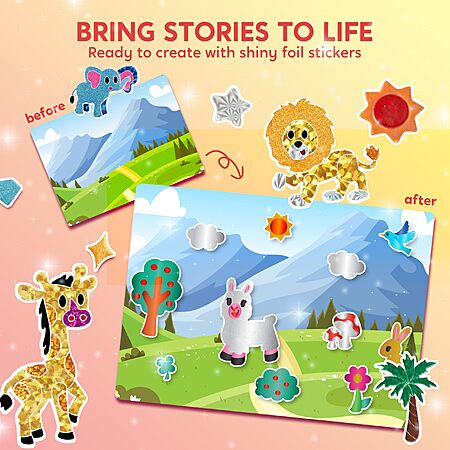 Model: Klever Kits Foil Art Kit for Kids - Arts & Crafts Supplies, Mess Free Coloring, Animal Foil Foam Stickers, Creative Travel Toys, Birthday Gifts for Boys & Girls Ages 4 and Up