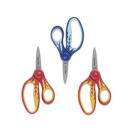 Fiskars 5" SoftGrip Pointed-Tip Scissors (3-Pack) Blue and Red Lightning ($5 w/ Free Prime Ship via Woot)