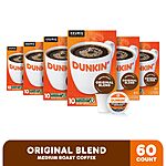 Dunkin' Original Blend Medium Roast Coffee, 60 Keurig K-Cup Pods with 15% S&S and after clip coupon $17.38