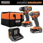 Ridgid 18V SubCompact Brushless 2-Tool Combo Kit with Drill/Driver, Impact Driver, (2) 2.0 Ah Batteries, Charger, and Tool Bag $139