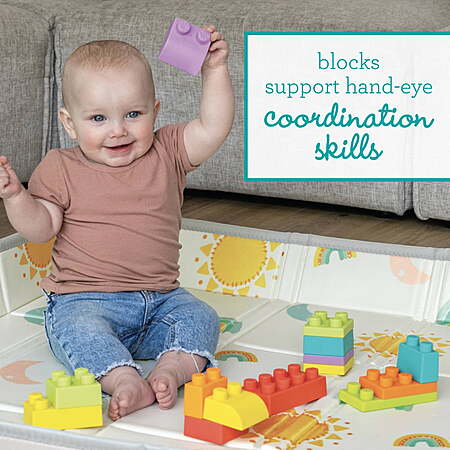 Model: Infantino 45" Foldable Foam Playmat and Soft Building Blocks, 6-12 Months, Sunshine, Moon & Rainbow