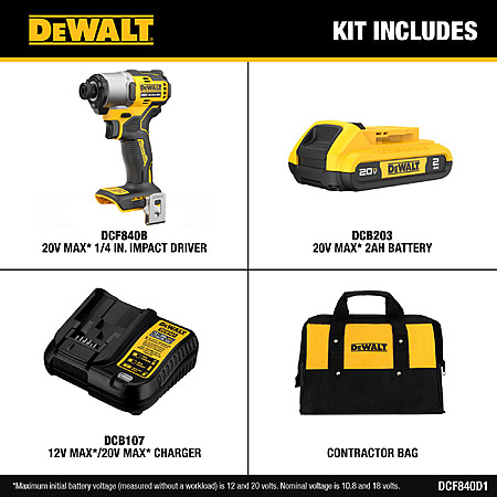 The 20V MAX* Brushless Cordless 1/4-in Impact Driver is engineered to be lightweight and powerful without compromising performance. The brushless motor delivers up to 1,700 in-lb. of torque and up to 3,200 RPM for driving large-diameter screws. Maintain productivity in low-light spots with a 3-LED on-board work light that illuminates dimly lit workspaces.
