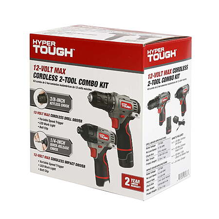 Hyper Tough 12V Max Cordless Drill + Impact Driver Kit w/ 1.5Ah Battery & Charger