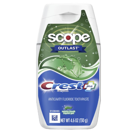 4.6-Oz Crest Plus Scope Gel Toothpaste & Oral-B Advanced Toothbrush + $3 W Cash