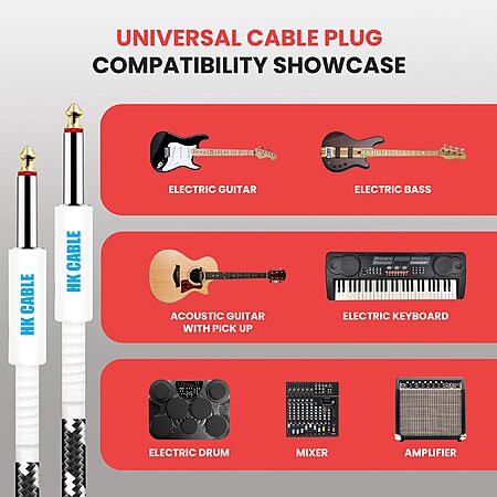 Model: Pyle 1/4 Inch TS Guitar Instrument Cable - 10 Ft AMP Cord with Straight Tip Sleeve for Electric Guitar, Bass, Keyboard - Flexible Tweed Jacket, Gold-Plated Plug