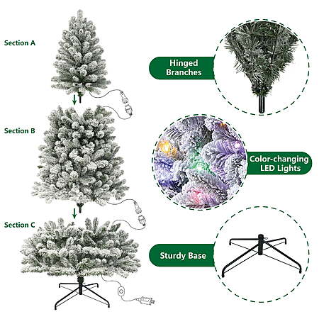 6.5' Holiday Time Pre-Lit Flocked Frisco Pine Artificial Christmas Tree w/ 250 Color-Changing LED Lights & Stand for