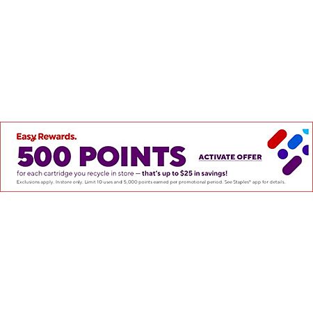 At Staples B&M- 500 points for each cartridge - upto 5000 in points. Starts from 12/29-2/1/25