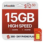 12-Month Infimobile Prepaid Unlimited Talk & Text + 15GB Data Plan SIM Card Kit on sale for $150 - 20% off when you clip the coupon listed on the product page =