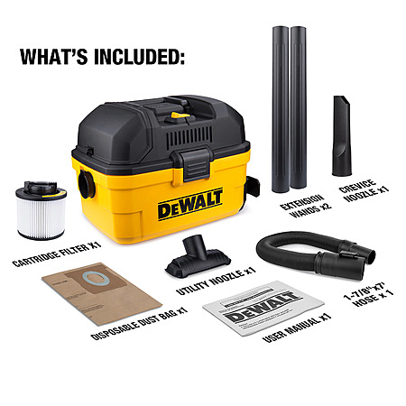 Lowes has DEWALT 4-Gallon 5-HP Portable Corded Wet/Dry Shop Vacuum w/ Accessories (DXV04T) on sale today for $54.99. Shipping is free w/ Lowe's myRewards membership (free to join).