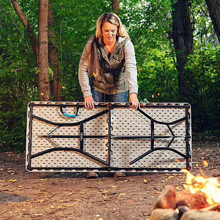 Walmart has 5' Lifetime Essential Fold-in-Half Outdoor Table (Gray) on sale for $29.58. Shipping is free with Walmart+ (free 30-day trial) or on orders of $35 or more.