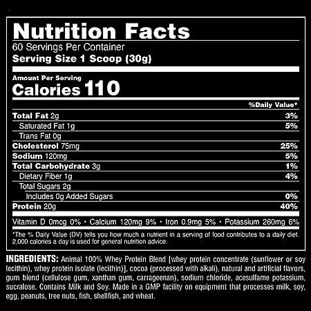 4 lbs Animal 100% Whey Protein Powder Blend w/ BCAA (Chocolate)
