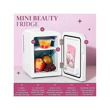 Paris Hilton Mini Personal Beauty Refrigerator w/ Dimmable LED Mirrored Fridge Door $9.99 + Free Shipping w/ Prime