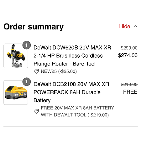 Home Depot is doing the same "buy router, get 8AH free" but more expensive.
