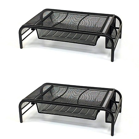 Mind Reader - Monitor Stand, Ventilated Laptop Riser, Paper Tray, Office, Metal Mesh, 20"L x 11.5"W x 5.5"H, Set of 2 - Black $35.99