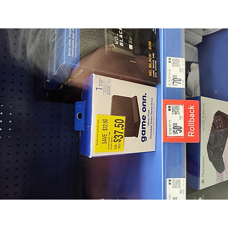 Our Walmart still has a huge stack of 500 GB Onn drives on clearance for $65... on top of the case with 2TB drives for $62. Granted, alleged-extra-high-speed SSD vs HDD, but still, those things aren't gonna move until they hit $20.