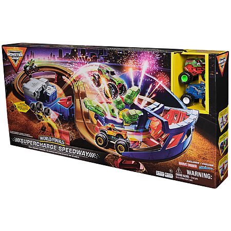 Amazon[amazon.com] has Monster Jam Supercharge Speedway Playset w/ Light-Up World Finals Track, 1:64 Megalodon & El Toro Loco Die-Cast Trucks for $38.58. Shipping is free.