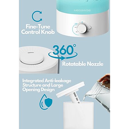 Model: MEGAWISE Cool Mist Humidifiers for Bedroom, BabyRoom, Office and Plants, 0.5 Gal Essential Oil Diffuser with Adjustable Mist Output, 25dB Quiet Ultrasonic Humidifiers, Up to 10H, Easy to Clean