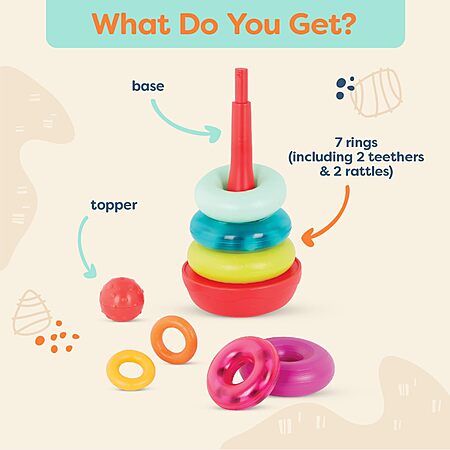 11" B. Baby Stacking Colorful Teether Sensory Toy Rings Set $6.49 + Free Shipping w/ Prime or on $35+