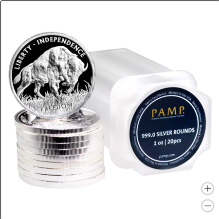 2024 1 oz PAMP American Buffalo Silver Round, 20-count