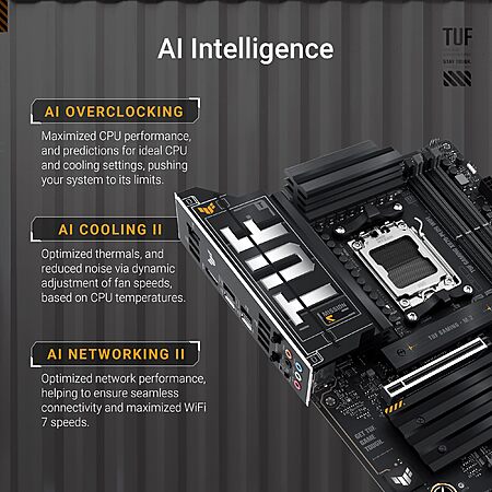 Model: ASUS TUF Gaming X870-PLUS WiFi AMD AM5 X870 ATX Motherboard, 16+2+1, 80A SPS Power Stages, DDR5, PCIe 5.0 Ready, Four M.2 Slots, Wi-Fi 7, 2.5Gb LAN, HDMI, USB4® 40Gbps, SATA 6 Gbps, USB 20Gbps Type-C