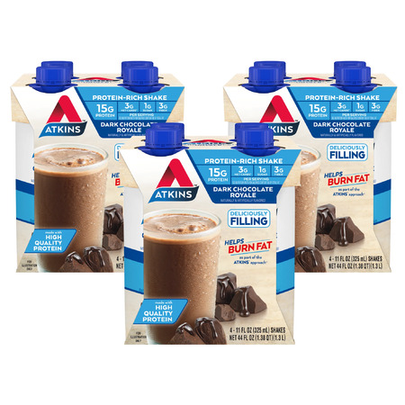 Atkins Gluten Free Protein-Rich Shake, Dark Chocolate Royale, Keto Friendly, 3/4ct Packs(Ready to Drink) $7.89