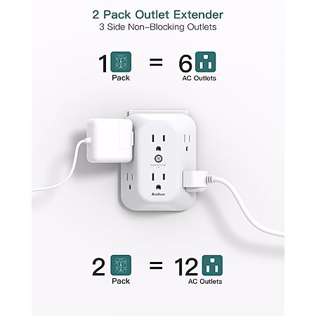 2-Pack Addtam 6-Outlet 1800J Surge Protector Wall Outlet Extender