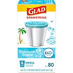 [S&S] $9.25*: 80-Ct 4-Gal Glad Odorshield Drawstring Trash Bags (Citron or Beachside Breeze) at Amazon