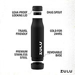 24oz ZULU Ace Vacuum Insulated Stainless Steel Water Bottle w/ Chug Spout (Black)