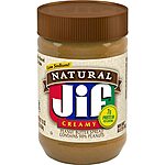 12-Pack 16-Oz Jif Natural Creamy Peanut Butter Spread (Low Sodium) on sale for