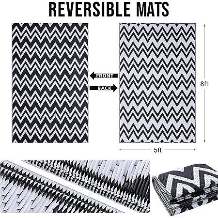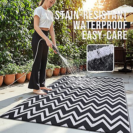 5' x 8' Olanly Waterproof Reversible Outdoor Area Rug (Black & White) $14.99 + Free Shipping w/ Prime or on $35+