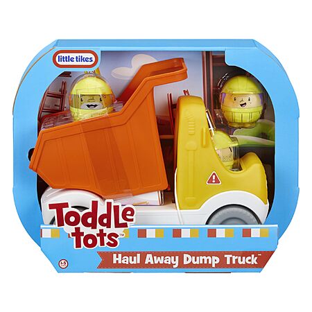 Roll into adventures with Little Tikes™ Haul Away Dump Truck™! What if little builders hauled their building materials to their play site? Toddlers can dream up all the fun possibilities with this construction-themed playset. Help the construction workers fill the truck bed and load a figure into the driver's seat. Now it's time to go! Push the dump truck to haul the materials to the construction site. When you arrive, tilt the truck bed back and dump out the materials. Ready to start building! Toddlers will love to help the construction workers build and construct their own adventures. With Little Tikes Toddle Tots™ characters and playsets, imagination is endless. Recommended for children ages 1-5 years.