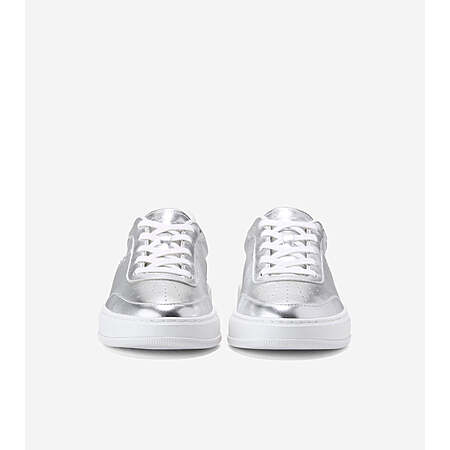 Our high-end version of the low-top basketball shoe - The GrandPro Carissa Sneaker, detailed with little touches of luxe that include pinking, laser-perforated ventilation over the forefoot, a contrasting heel tab, and a comfy, padded collar. Featuring a rubber cupsole with a basketball-inspired traction pattern. Leather upper in Silver Talca with heel tab in White; five-eyelet lacingHigh-traction rubber cupsoleFoam-padded footbed