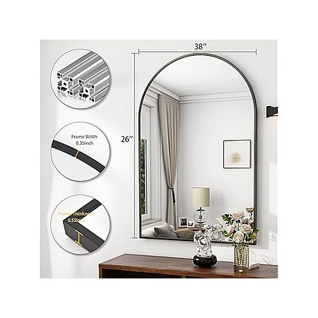 BEAUTYPEAK 38"x26" Arch Wall Mounted Mirror (Black/Gold) $25 + Free Shipping w/ Prime