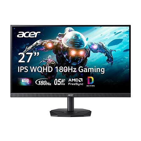 Acer Nitro 27" WQHD 2560x1440 IPS Gaming Monitor AMD FreeSync Up to 180Hz Refresh Up to 0.5ms DCI-P3 95% HDR 10 Support KG271U N3bmiipx at Amazon $149.99