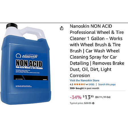 Amazon has 1-Gallon Nanoskin NON ACID Professional Wheel & Tire Cleaner on sale for $14.66 - 5% when you check out via Subscribe & Save = $13.93. Shipping is free with Prime or $35+ orders.