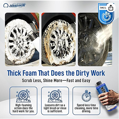 • Stable foam allows for complete coverage and proper cling-time to vehicle surfaces, makes beginner and professional detailer friendly. Nanoskin Non Acid enables you to save time and maximize profits by relying on one wheel cleaner for most applications.