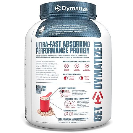 Amazon [amazon.com] has 5-Lb Dymatize ISO100 Hydrolyzed 100% Whey Isolate Protein Powder (various flavors) on sale Buy 2 Get 1 Free multi-buy discount - 5% coupon - 15% when you check out via Subscribe & Save for as low as $139 + tax. Shipping is free.