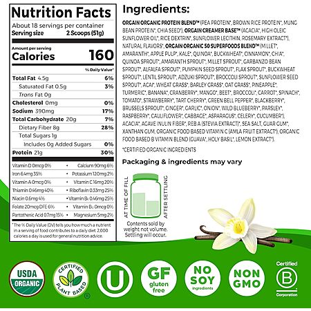 - Go to 2.02-Lb Orgain Organic Vegan Protein + 50 Superfoods Powder (Vanilla Bean)