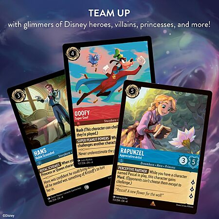 • Each of the two prebuilt decks is filled with special versions of Disney friends called "glimmers" that are ready to join you on your adventure. With Disney Lorcana Gateway, you'll learn both how to play them and ways they can work together.