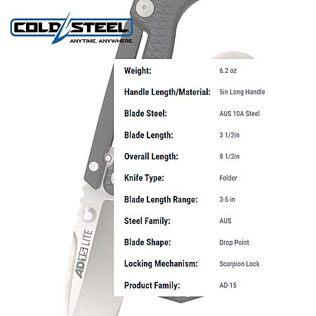 Cold Steel AD-15 Lite 3.5" AUS10A Steel Ultra-Sharp Blade 5" Griv-Ex Handle Tactical Folding Knife - Scorpion Lock, Pocket/Belt Clip 63% OFF + Free Prime Shipping