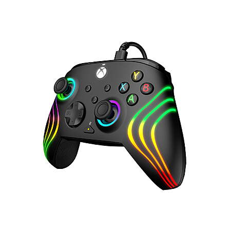 | Product Description: | See your gaming in a new light with the Afterglow Wave Wired Controller for Xbox! Customize your gameplay, create colorful displays, and more with this officially licensed controller. Make waves with the millions of colors and combinations of the Afterglow Wave Wired Controller's RBG lights and settings. Cycle through different lighting effects and colors using the ""function"" button or download the free PDP Control Hub app to change the eight RGB lighting zones and more. Customize your controller even further, in the app, with countless options like re-mapping buttons, reconfiguring triggers, or adjusting deadzones. Take down the ops quickly and efficiently by mapping controller functions to the two programmable back buttons. Use the built-in volume controls on the D-pad, and quick mic mute, to make rapid-fire adjustments without ruining your immersion. Get improved accuracy and all-day comfort with the controller’s textured grips and triggers. Plug in the included, 8-foot USB-C cable and start showing off your true colors. Technical Specifications Connectivity USB-C Cable 8-foot, detachable USB-C cable Buttons Re-map buttons, reconfigure triggers, adjust dead zones, and more with the free PDP Control Hub App. Laser-etched texture on grips, thumbsticks,& triggers. Audio Built-in audio controls for quick, mid-game adjustments. Programmable back buttons for quicker responses. LED Lights Customize lighting effects & edit eight RGB zones with the free PDP Control Hub App. Official License Officially licensed by Xbox Software PDP Control Hub App What's in the Box Afterglow Wave Wired Controller 8-foot USB-C cable Customize lighting effects, edit eight RGB zones, re-map button, adjust deadzones, and more with the free PDP Control Hub App Built-in audio controls for quick, mid-game adjustments and programmable back buttons for quicker responses Laser-etched texture on grips & triggers for comfort and accuracy Includes 8-foot, detachable USB-C cable for plenty of room to play Officially licensed by Xbox |