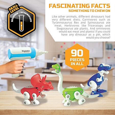 90-pc Discovery Dinosaur Action Build 3-Model Construction Set (Brachiosaurus, T-Rex & Triceratops) $11.90 + Free Shipping w/ Prime or on $35+