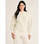 Free Assembly Women's Embroidered Long Sleeve Flower Sweater (Cream)