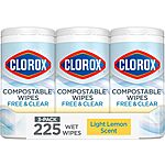 3-Pack 75-Count Clorox Free & Clear Compostable Cleaning Wipes (Light Lemon)