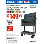 Harbor Freight ITC members, U.S. GENERAL 30 in. 4-Drawer Tech Cart for $149.99